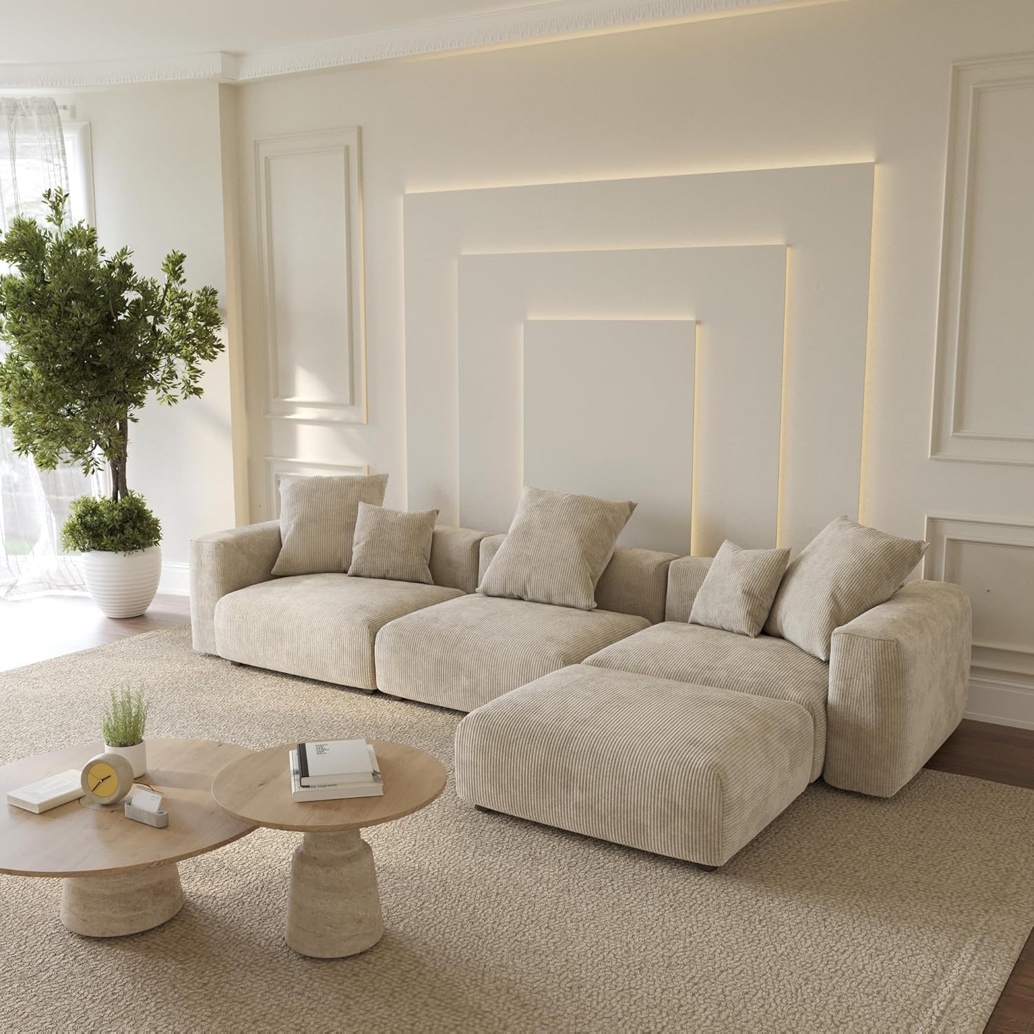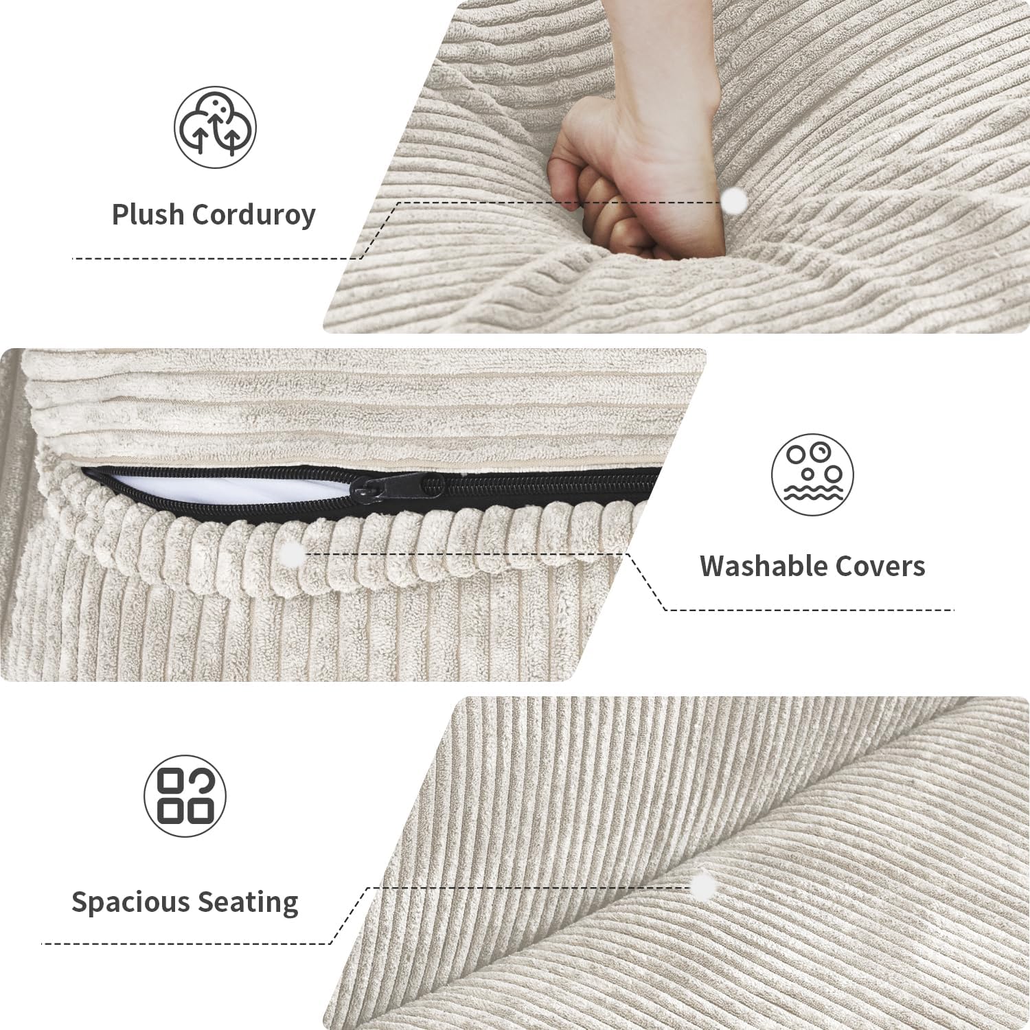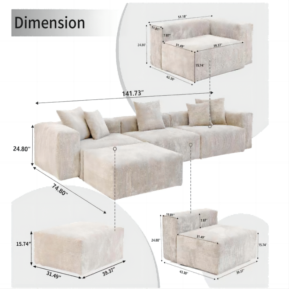 Sectional Sofa is made of high-quality corduroy, which is soft, wear-resistant, wrinkle resistant, and does not deform. After long-term use, it will be as new as new. it can providing a soft and comfortable feel, just like sitting on a cloud. Whether you want to relax or enjoy a good read, this sofa will offer you an incredibly comfortable experience.