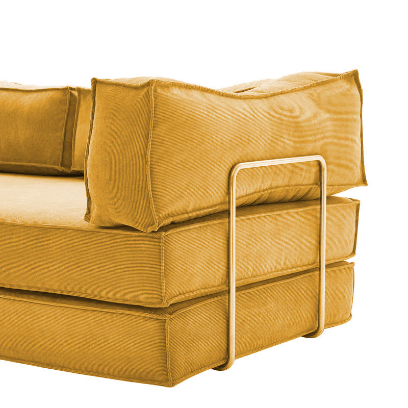 The sleek and minimalist aesthetic with warm mustard tones complements any contemporary décor. The quilted design adds elegance and texture to your living room.