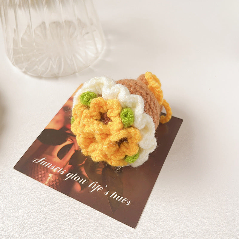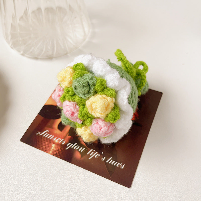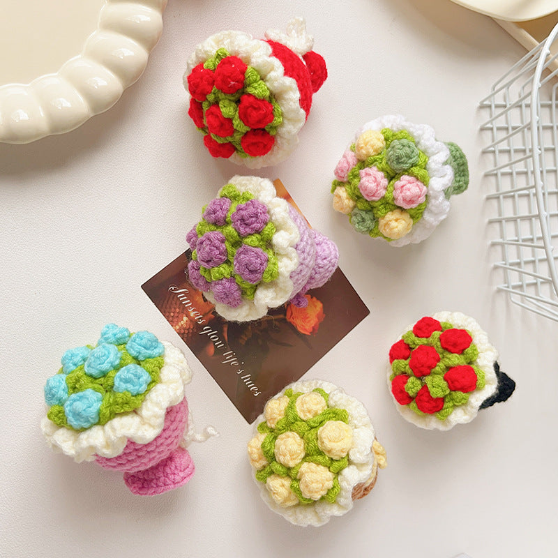 Each bouquet is made from soft yarn materials and requires simple DIY assembly.